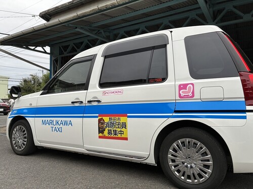 国の「消防団の力向上モデル事業」を活用し、作成した「消防団員募集」マグネットシートを市内の民間事業者等の車両及び市の公用車、消防団車両等に掲示し、市内全域で消防団員募集PRを実施しております。