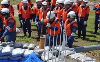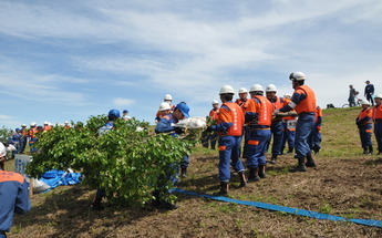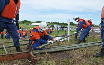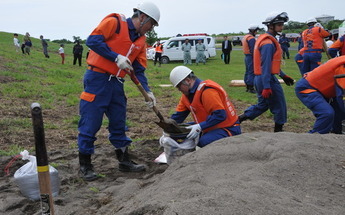 梅雨や台風など雨の多くなる時期に備えて、消防職員の指導のもと、古くから伝わる伝統的な水防工法を消防団員の皆さんに訓練・習得していただきました。