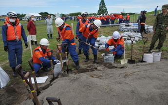 降雨車、高所作業車への搭乗、土のう作りなどの体験を通して、水防の大切さを学んでいただきました。