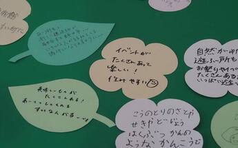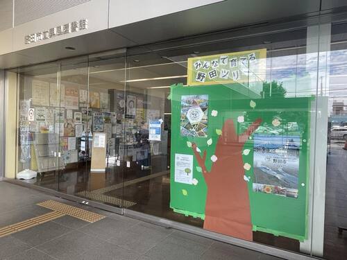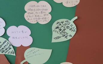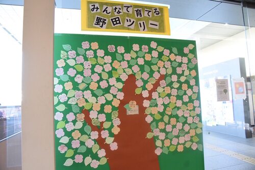 これは市制施行75周年を記念して設置されたもので、各図書館などへ来館された皆さんに「野田市の自慢の場所」や「素敵なところ」などを若葉や花びらのカードに記入していただき、市民の皆さんと一緒に、野田の魅力や野田市の未来への想いを共有する取り組みです。