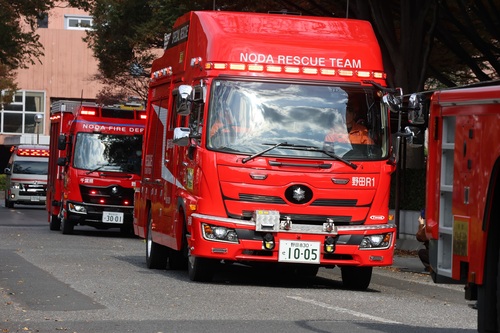 11月8日(土曜日)に野田市役所杜の広場・駐車場にて、9日(日曜日)から始まる火災予防運動の一環として、日頃の消防活動を、実物の消防車や資機材を間近で見て・触れて・体験することで、市民の皆さんの消防に寄せる安心感と信頼度を高めるとともに、子どもたちに関心、そして夢と憧れを育み、「野田市に住み続けたい」「野田市で消防士になりたい」「消防団員として野田市に貢献したい」と感じてもらうことで、「元気で明るい家庭を築ける野田市」に繋げていくことを目的に「消防救急フェスタ2025」を開催しました。