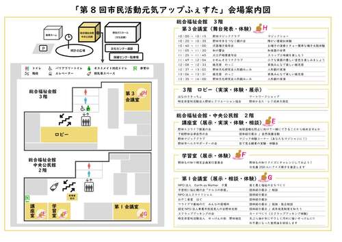 各会場ごとの催しや参加団体については、下記のとおりです。