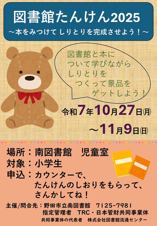図書館の児童室で本をみつけて、しりとりを完成させよう!