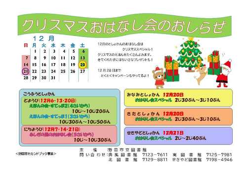 12月のとしょかんのおはなし会は、クリスマススペシャル!