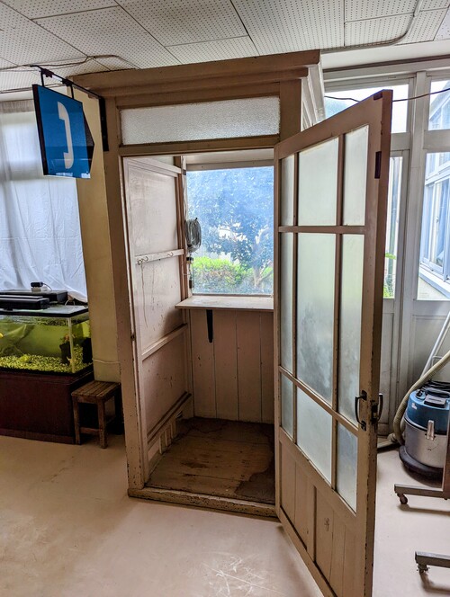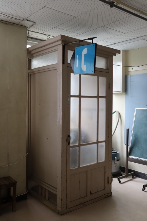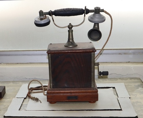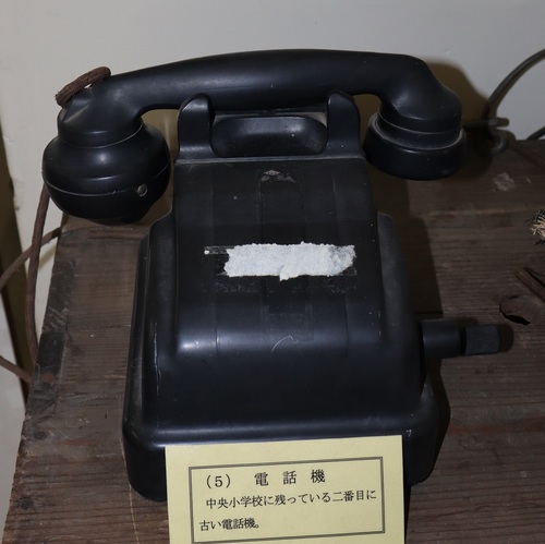 校舎の正面玄関口には、木製の電話ボックス(写真1・設置年不明)があります。現在電話ボックス内に電話機はありませんが、中央小には古い電話機が残されており、最も古い電話機は大正15(1926)年に製造されたもの(写真2)です。また、2番目に古い電話機(写真3・製造年不明)も保存されています。いずれの電話機もダイヤルがありません。どうやって電話をかけたのでしょうか?その答えは電話機の右側にあるハンドルに隠されています。ハンドルを回すと交換局につながり、相手の連絡先を伝えると交換手(オペレーター)が相手の電話機につなげてくれたのです。見学は中央小(電話番号04-7122-2116)に事前に問い合わせてくださいね(平日のみ)。