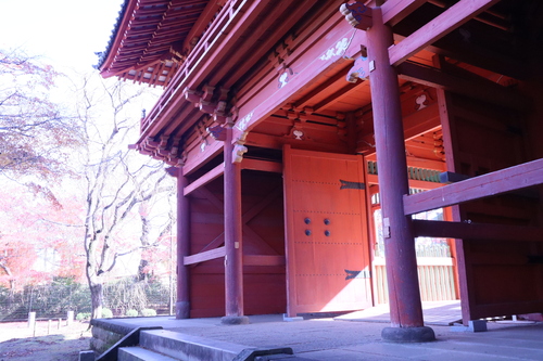 清水公園の金乗院仁王門の柱の1本が短く途中から石の柱になっていますがなぜでしょうか。金乗院は1398年創建、仁王門は1761年に建立されました。仁王門の建設にまつわる伝説があります。