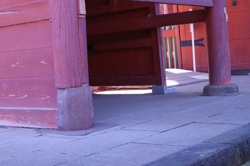 [画像]丸2(112.1 KB)その伝説とは、大工の棟梁を困らせようとしたら、逆にやられてしまったというものです。これは、請負大工の棟梁に反感を持っていた者が、困らせてやろうと柱を短く切ってしまいましたが、棟梁は事前に察知し、石の台をこっそり準備して、門を遅れずに完成させました。この柱にはそんな伝説が残されています。