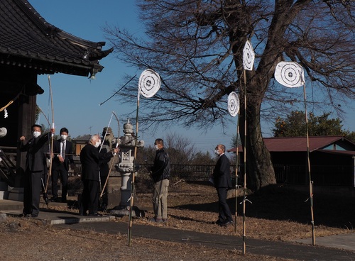 市内では、木野崎の香取神社や東宝珠花の日枝神社、今上上谷と下谷の女體神社に弓射を行うオビシャが残っています。また、船形の香取神社で行われるオビシャは、古式に則って20種以上の山野菜や魚などを神饌として供える行事で、船形香取神社御社擅御膳献上式の名前で野田市無形民俗文化財の指定を受けています。