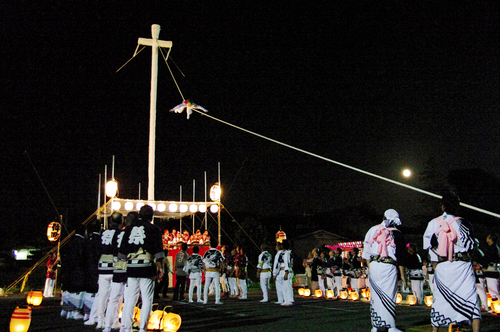 毎年7月に行われている津久舞は、野田市民にとってはお馴染みの行事の1つですが、非常に珍しい祭礼です。現在全国で確認される「つく舞」は4か所(野田市、旭市、多古町、茨城県龍ケ崎市)に残っています。記録では、いすみ市や市川市、柏市、茨城県利根町などの千葉・茨城の広い範囲で行われていたことがわかっていますが、ほとんどは幕末から明治時代に途絶えました。野田の津久舞も同じ運命をたどり、いくどもの中断、復活の歴史でした。