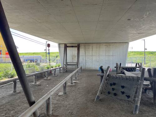 さらに、関宿中央ターミナルの整備に合わせて、バスターミナルから宝珠花橋へ接続する宝珠花跨道橋(ふれあい中央橋)を新設し、橋下のスペースを活用して、雨の日でも子どもたちが遊べる施設「ふれあいわんぱく広場」を整備しました。各施設の随所には、城下町や水上交通の要衝として栄えたまちをイメージしたモニュメントやオブジェが、歩道、照明灯、橋の欄干、車止めなどに施されています。
