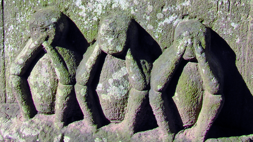 庚申塔に彫られることが多い三猿の由来は、古代エジプトが発祥といわれ、世界各地で見られます。