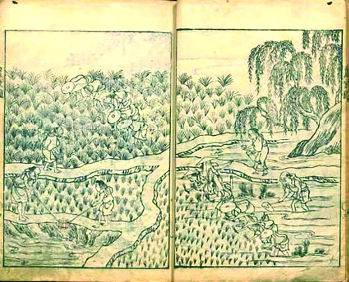 また、日本人の生活と経済を支えてきた稲作を中心とした、豊作への祈りや感謝を季節の行事や祭り、儀礼として、各地で受け継がれています。正月行事の飾りやお供えは豊作をもたらす年神様に対するもので、お花見も農作業が始まる季節の到来を祝った行事で、お月見も農作物の収穫を感謝するものです。日本の国技である相撲も、豊作を願い神様に奉納される神聖な行事として始まり、能や民謡も、稲作を起源とする伝統芸能として受け継がれてきました。また、田んぼは米を栽培するだけでなく、魚や鳥、昆虫などの食料捕獲の場所でもありました。ナマズやドジョウ、コイ、フナ、ウナギ、タニシ、カモ、イナゴは、人間にとって貴重な動物性タンパク源でした。