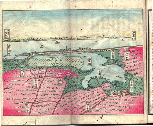 渋沢の日記によると、彼が66歳となる明治39(1906)年4月6日、観桃の名所で知られていた野田を日帰りで訪れたことが記されています。当日の行程は、梨兵左衛門家の邸宅、茂木七郎右衛門家の醤油工場、愛宕神社を巡ってから、座生沼に舟を3艘浮かべて宴会を催したそうです。道中の麦畑と桃の花が見事なことが綴られています。