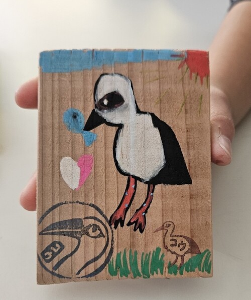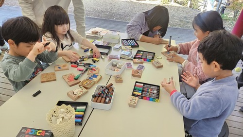 [画像]パネル(88.3 KB)また、ワークショップでは、市内の間伐材を利用した「お絵かき」や、