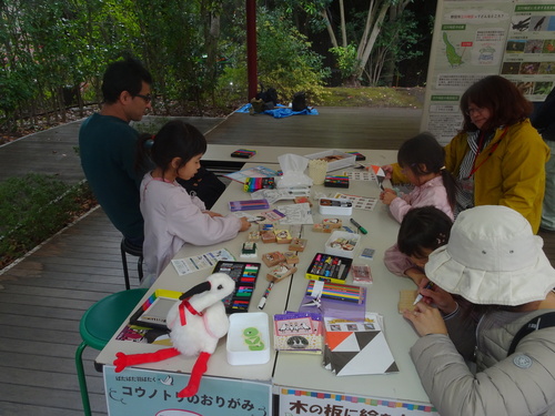 コウノトリをモチーフにした「折り紙」・「ぬり絵」の体験コーナーを運営!