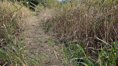 [画像]作業前(123.1 KB)50分ほど草刈りを行うと、池の水面がはっきり見えるようになりました!