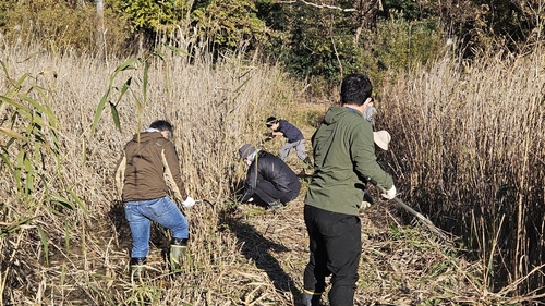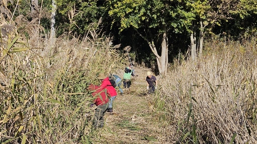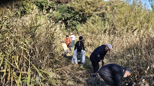 11月22日(土曜日)に、三ツ堀里山自然園で「ニホンアカガエル」の産卵地を保全するため、湿地の草刈り作業を行いました。