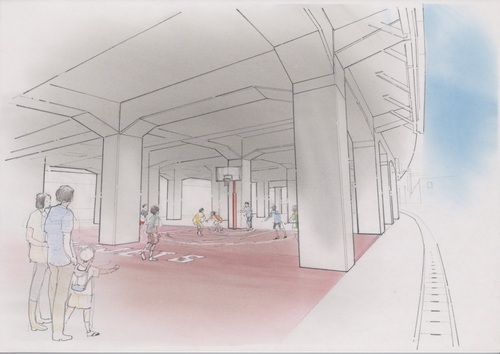 東武野田線野田市駅高架下に(仮称)高架下スポーツパークとして、3×3バスケットボールコート及びスケートボードパークを令和8年11月のオープンに向け整備します。また、プロバスケットボールチームである千葉ジェッツふなばしと連携することで、多様な意見、成功事例を取り入れながらスポーツによるまちづくりを推進します。さらに、スポーツ以外にも、チアリーダーによるダンス教室や健康体操教室等を行うことで、鉄道高架下を多様な使い方ができる空間として整備し、そこを訪れる方や地域住民をつなぐことで、「居心地がよく歩きたくなるまち」を目指します。