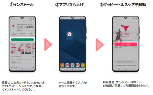 歩数や体重の記録など、日々の取組がアプリ上で記録されると、自動的にポイントが貯まり、毎月1,000ポイント達成した方の中から抽選で500円分のデジタルギフトが当たります。