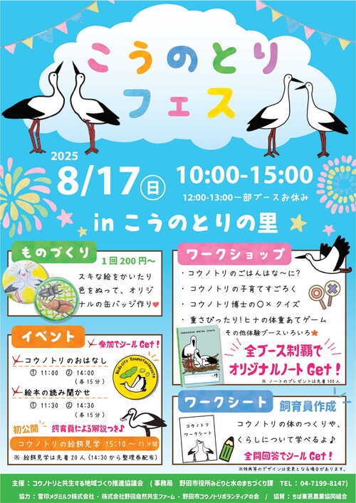 市ではじめて開催する「コウノトリ」をテーマとした体験イベントです。