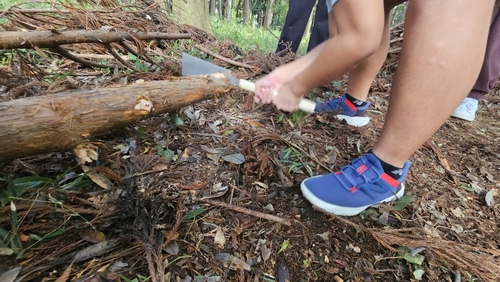 [画像]万華鏡(81.3 KB)のこぎりを使った「丸太切り体験」も大好評でした。