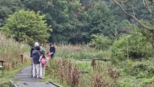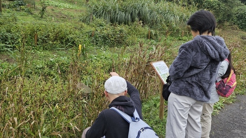 見頃をむかえたフジバカマなどの植物や、水辺にひっそりと隠れているカエルの仲間を探したりと、